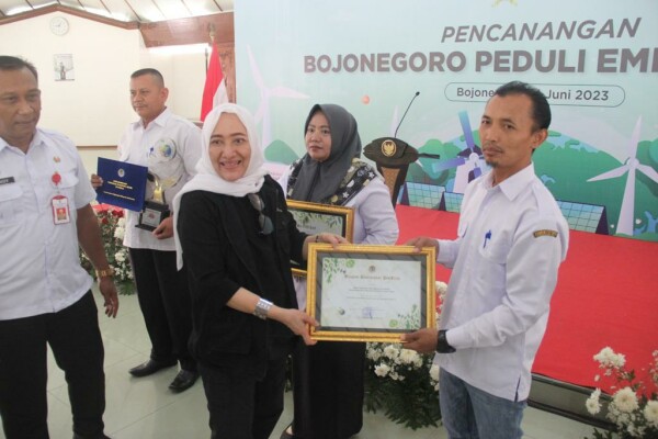 Dalam kegiatan ini juga diwarnai dengan penyerahan piagam dan piala penghargaan dari Menteri Lingkungan Hidup dan Kehutanan (LHK) kepada desa yang berhasil meraih predikat proklim utama yang diselenggarakan di Pendopo Malowopati Bojonegoro, Rabu (14/6/2023).