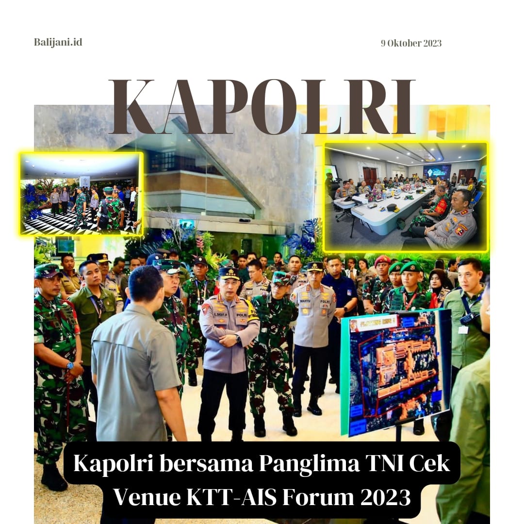 “Bapak Kapolri dan Bapak Panglima TNI bersama dengan Kapolda Bali dan Pejabat Utama Mabes Polri menyempatkan untuk melihat kesiapan fitur-fitur yang ada di Command Centre 91 Polda Bali ITDC, Nusa Dua. Ini merupakan keseriusan Polri berkolaborasi dengan TNI dalam menjelang perhelatan KTT AIS Forum 2023 yang akan diadakan 10-11 Oktober 2023” ucap Kabid Humas Polda Bali.