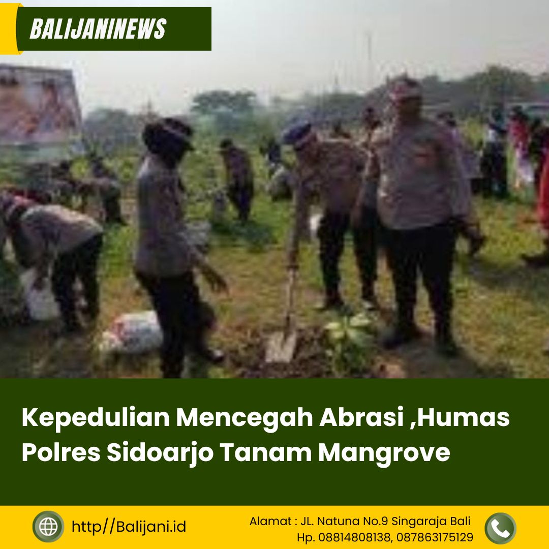 Sidoarjo, Balijani.id ~ Menyambut Hari Ulang Tahun (HUT) Humas Polri ke-72, Polri gencarkan gerakan peduli penghijauan. Dengan melakukan penanaman bibit pohon mangrove secara serentak se-Indonesia, Sabtu (14/10/2023).