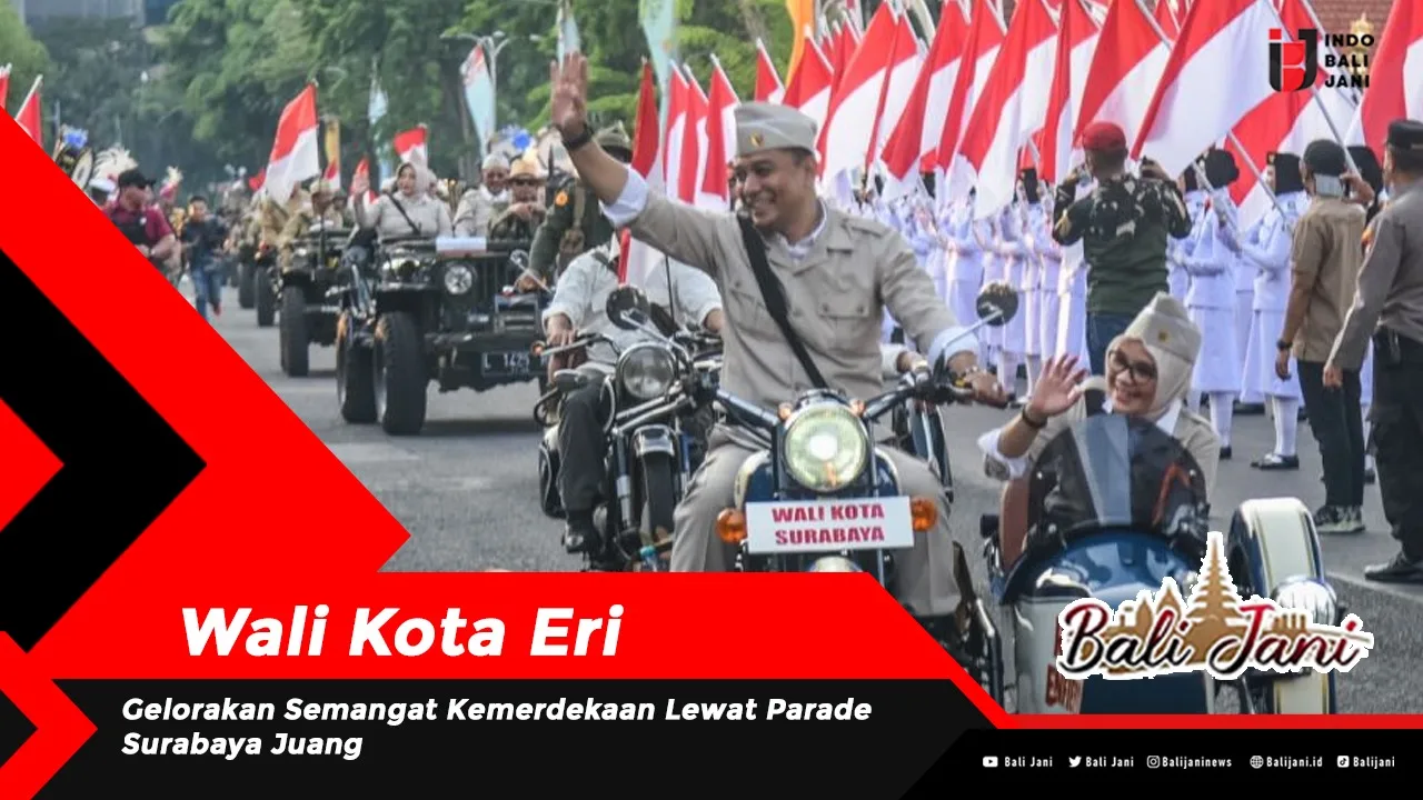 Menggiring pemberangkatan Parade Surabaya Juang tahun 2023, Wali Kota Eri menerima penyerahan bendera Merah Putih dari Veteran. Selanjutnya, bendera itu diserahkan Wali Kota Eri kepada Paskibraka sebagai tanda pemberangkatan.
