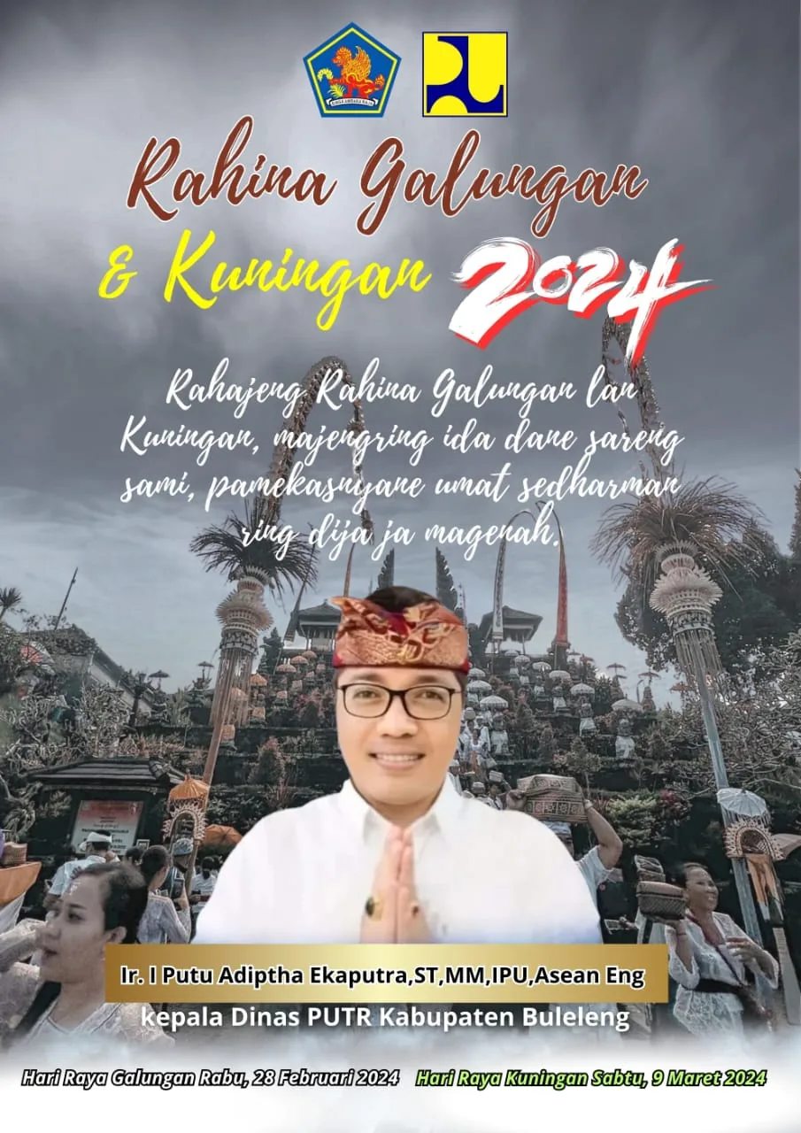 Singaraja, Balijani.id ~ Kepala Dinas PUTR Kabupaten Bulelen Ir. I Putu Adiptha Ekaputra, S.T, M.M, IPU, Asean Eng beserta Keluarga besarkan mengatakan Hari Raya Galungan merupakan Hari Kemenangan Dharma (kebenaran) melawan Adharma (kejahatan). Hari Galungan juga menjadi hari di mana umat Hindu memperingati terciptanya alam semesta jagad raya beserta seluruh isinya.
