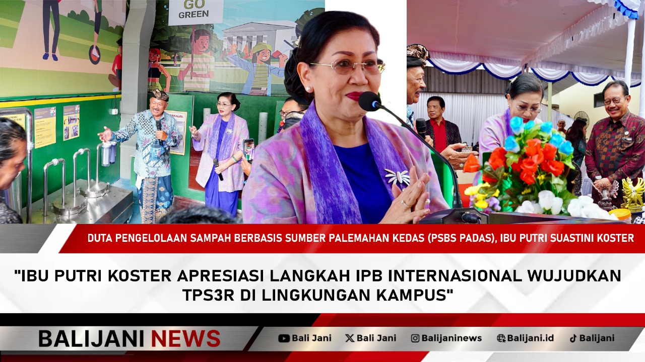 Dalam sambutannya saat menghadiri acara peresmian TPS3R, Ibu Putri Koster menyampaikan terima kasih kepada Rektor IPB Internasional dan Ketua Yayasan Dharma Widya Ulangun yang telah memprakarsai pembuatan tempat pengelolaan sampah di lingkungan kampus.