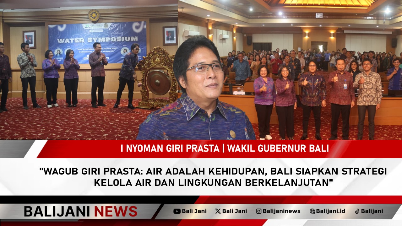Denpasar, Balijani.id| Wakil Gubernur Bali, I Nyoman Giri Prasta, menyampaikan komitmennya untuk menjaga ketersediaan air bersih dan kelestarian lingkungan di Pulau Dewata. Hal ini disampaikannya saat memberikan sambutan dalam Water Symposium bertema “Closing the Loop: Enhancing Urban Water Metabolism Through Circular Wastewater Strategies for Sustainable Cities” yang digelar di Gedung Pascasarjana Universitas Udayana, Jalan Sudirman, Denpasar, Senin (19/8).