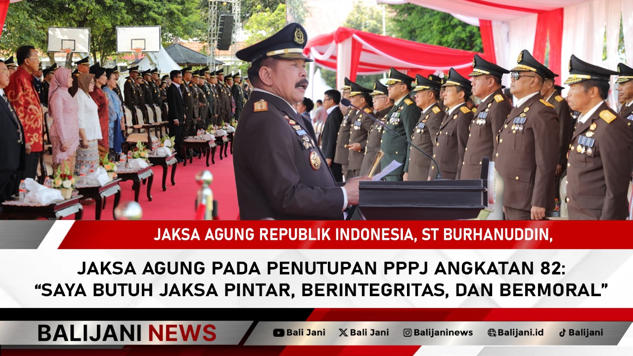 Jakarta, Balijani.id| Jaksa Agung Republik Indonesia, ST Burhanuddin, resmi menutup Pendidikan dan Pelatihan Pembentukan Jaksa (PPPJ) Angkatan 82 Gelombang I Tahun 2025, Kamis (4/9/2025), di Lapangan Upacara Badan Diklat Kejaksaan RI, Jakarta.