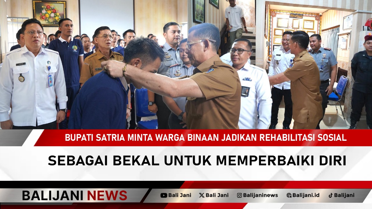 Klungkung, Balijani.id| Kepada warga binaan jadikanlah kesempatan ini sebagai momentum berharga dan jangan sia-siakan program rehabilitasi ini. Hal tersebut disampaikan Bupati Klungkung, I Made Satria saat membuka kegiatan Rehabilitasi Sosial di Aula Rumah Tahanan (Rutan) Negara Kelas IIB Kabupaten Klungkung, Senin (8/9). Kegiatan ini merupakan tahapan penting dalam proses reintegrasi sosial narapidana, agar mereka mampu kembali ke masyarakat tanpa stigma, memiliki keterampilan dan tidak kembali melakukan tindak pidana (residivisme).