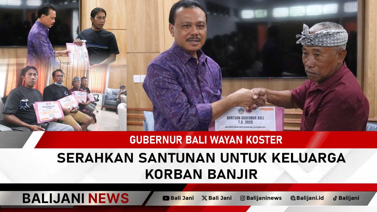 Denpasar, Balijani.id| Pemerintah Provinsi Bali menyerahkan santunan kepada keluarga korban meninggal akibat banjir bandang yang melanda Bali pada 10 September lalu. Santunan tersebut diserahkan oleh Sekretaris Daerah Provinsi Bali, Dewa Made Indra, mewakili Gubernur Bali Wayan Koster, di Kantor BPBD Bali, Senin (15/9).
