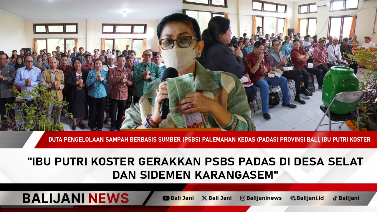 Karangasem, Balijani.id| Duta Pengelolaan Sampah Berbasis Sumber (PSBS) Palemahan Kedas (PADAS) Provinsi Bali, Ibu Putri Koster, menjadi narasumber pada kegiatan Sosialisasi Percepatan Pelaksanaan Pembatasan Penggunaan Plastik Sekali Pakai (PPPPSP) dan Pengelolaan Sampah Berbasis Sumber (PSBS) di Wantilan Kantor Camat Selat, Kabupaten Karangasem, Jumat (19/9).