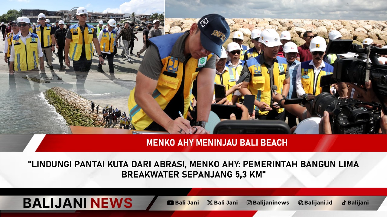 Kuta, Balijani.id| Pemerintah melalui Kementerian Koordinator Bidang Infrastrukur dan Pembangunan Kewilayahan terus memperkuat upaya perlindungan kawasan pesisir Bali melalui pembangunan breakwater dan revitalisasi garis pantai Kuta–Legian–Seminyak. Menteri Koordinator Bidang Infrastruktur dan Pembangunan Kewilayahan, Agus Harimurti Yudhoyono (AHY), menyampaikan bahwa proyek sepanjang 5,3 kilometer ini merupakan bagian penting dari komitmen pemerintah menjaga kelestarian lingkungan sekaligus menopang sektor pariwisata Pulau Dewata.