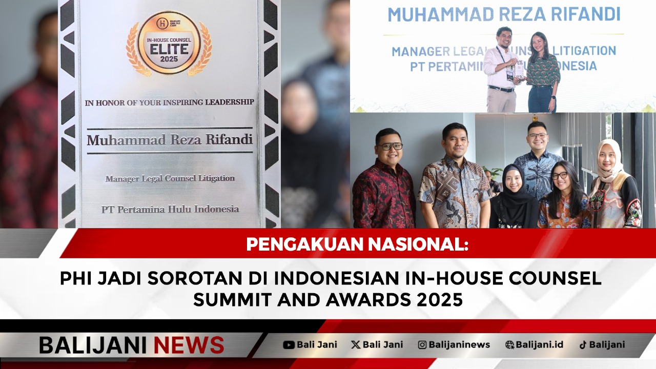 Nusa Dua, Balijani.id| PT Pertamina Hulu Indonesia (PHI) kembali mencatatkan namanya di kancah nasional. Muhammad Reza Rifandi, Manager Legal Counsel Litigation PHI, berhasil meraih penghargaan Indonesian In-House Counsel Elite (IHCE) 2025 untuk kategori Inspiring Leadership dalam ajang Indonesian In-House Counsel Summit and Awards (IHCSA) 2025.