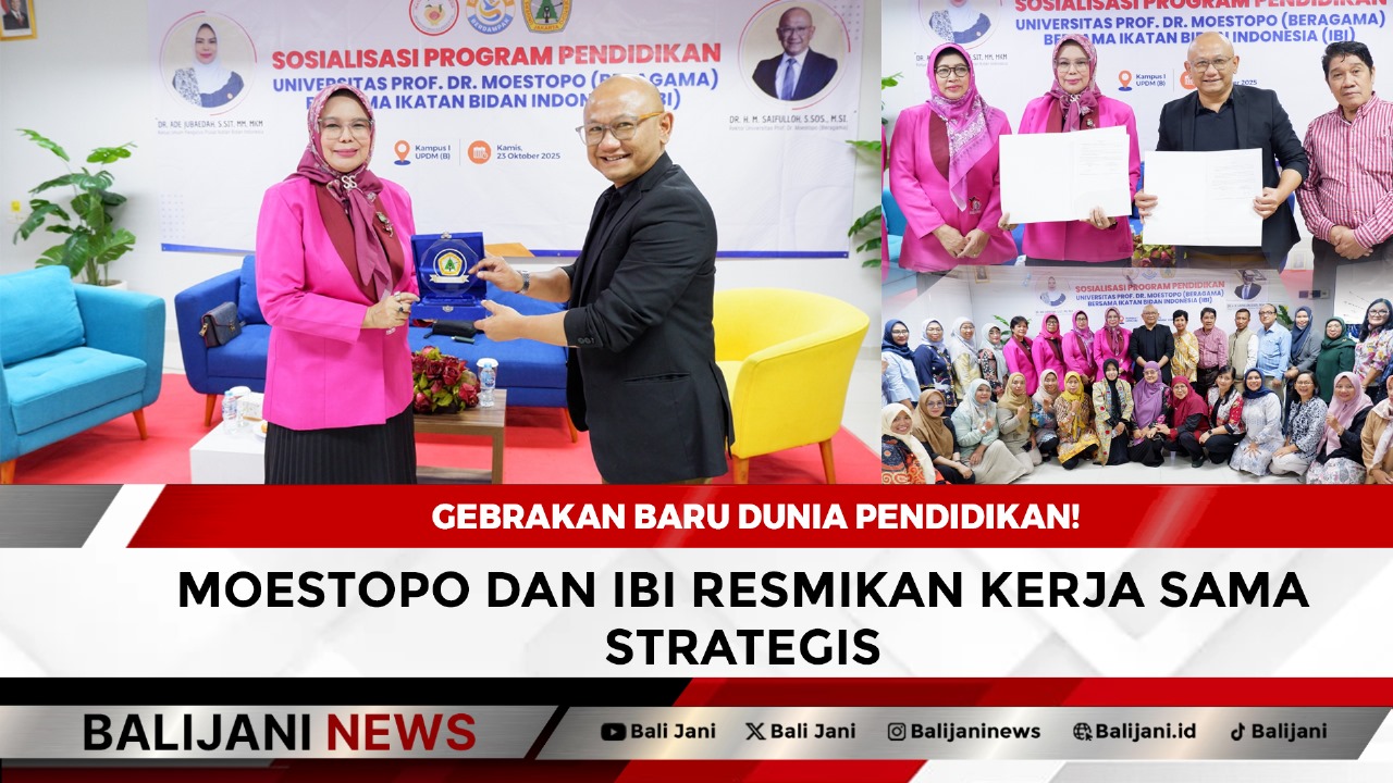 Jakarta, Balijani.id| 23 Oktober 2025 — Universitas Prof. Dr. Moestopo (Beragama) menjalin kerja sama strategis di bidang pendidikan dengan Ikatan Bidan Indonesia (IBI). Kegiatan sosialisasi pendidikan dan penandatanganan nota kesepahaman (MoU) tersebut berlangsung pada Kamis, 23 Oktober 2025, di Kampus I Universitas Prof. Dr. Moestopo (Beragama), Jakarta.