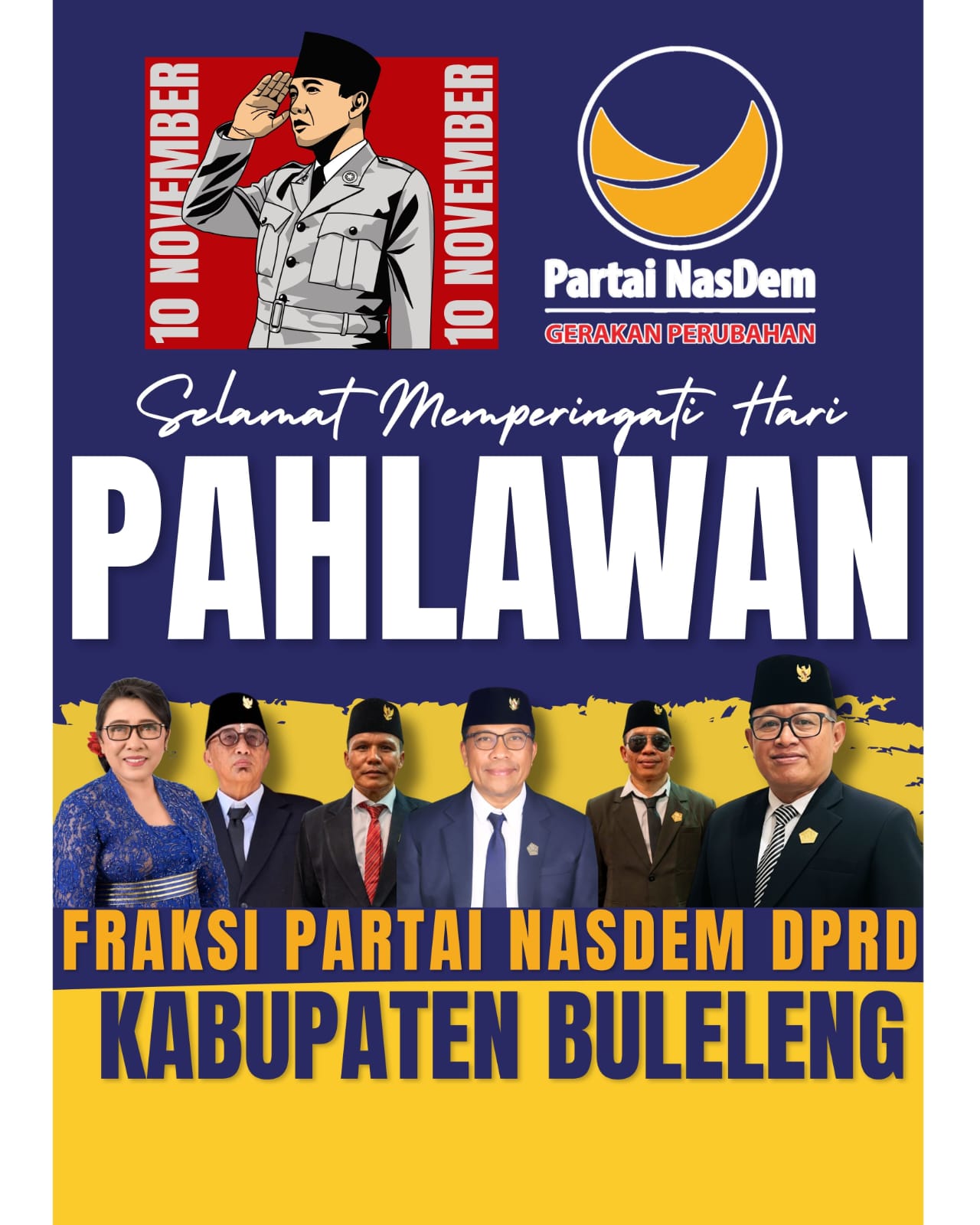 Buleleng, Balijani.id| Fraksi Partai NasDem DPRD Kabupaten Buleleng menyerukan semangat perjuangan nyata di momentum Hari Pahlawan 10 November 2025. Bagi mereka, kepahlawanan masa kini bukan lagi tentang mengangkat senjata, melainkan keberanian memperjuangkan aspirasi rakyat di ruang kebijakan.