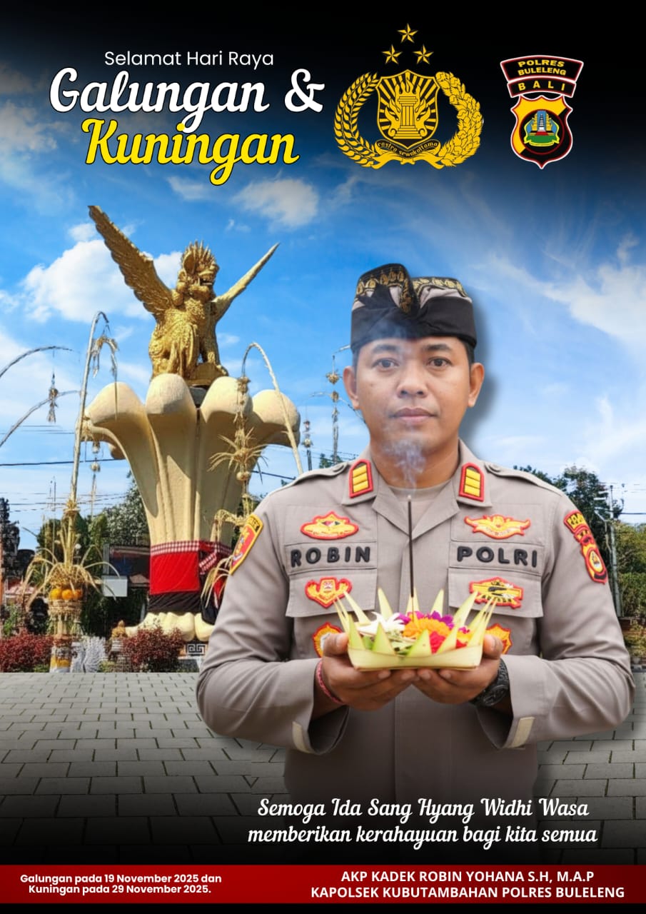 Buleleng, Balijani.id| Kapolsek Kubutambahan AKP Kadek Robin Yohana, S.H, M.A.P mengucapkan selamat Hari Raya Galungan dan Kuningan kepada seluruh umat Hindu di wilayahnya.