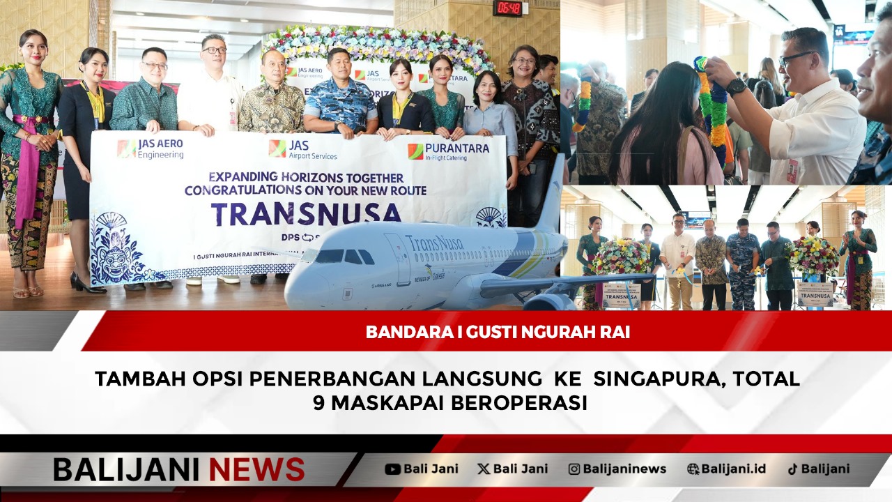 Mangupura, Balijani.id| 17 November 2025 – Bandara Internasional I Gusti Ngurah Rai Bali terus memperkuat konektivitas internasionalnya melalui penambahan layanan penerbangan langsung dari dan ke Singapura. Dengan beroperasinya maskapai terbaru, TransNusa yang melayani rute Denpasar–Singapura, kini Bandara I Gusti Ngurah Rai resmi dilayani oleh total 9 maskapai untuk rute tersebut, menjadikannya salah satu koridor internasional tersibuk dan paling strategis bagi Bali.