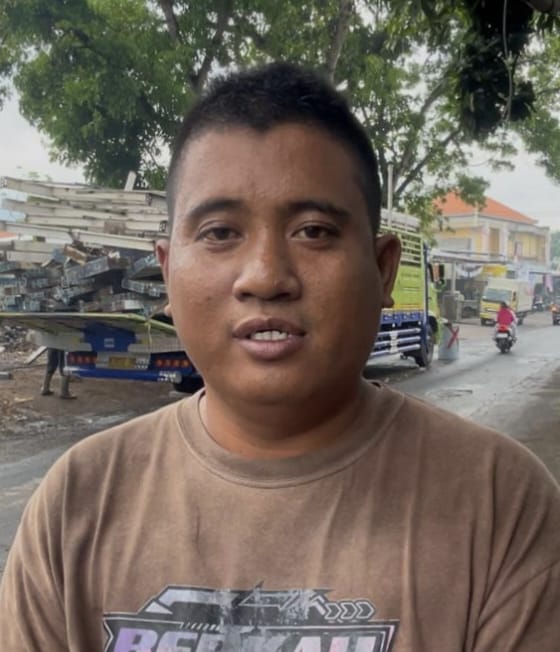 Novan, sopir truk asal Surabaya, menjelaskan alasan kendaraan beratnya terparkir di lokasi tersebut.