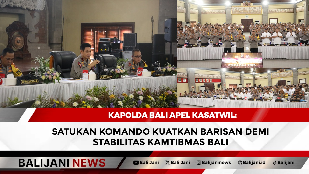 Denpasar, Balijani.id| Kapolda Bali Irjen Pol. Daniel Adityajaya, S.H., S.I.K., M.Si. Didampingi Wakapolda Bali Brigjen. Pol. I Komang Sandi Arsana, S.I.K., M.H. memimpin langsung Apel Kasatwil Polda Bali sebagai upaya untuk memberikan arahan dan penekanan kepada seluruh Pejabat Utama Polda, Kapolres/Ta jajaran, serta para perwira menengah Polda Bali di Gedung Presisi Polda Bali, Rabu (3/12/2025).