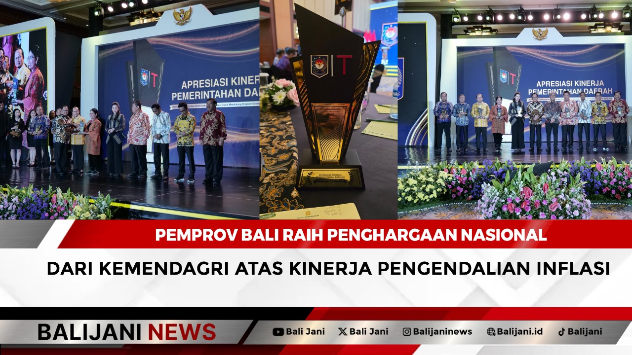 Denpasar, Balijani.id| Pemerintah Provinsi Bali kembali mencatat prestasi membanggakan di tingkat nasional. Pada ajang Apresiasi Kinerja Pemerintahan Daerah 2025 yang digelar Kementerian Dalam Negeri (Kemendagri), Pemprov Bali berhasil meraih penghargaan untuk kategori kinerja terbaik dalam pengendalian inflasi. Penghargaan tersebut diterima oleh Asisten Perekonomian dan Pembangunan Setda Provinsi Bali, Luh Ayu Aryani, mewakili Gubernur Bali, dalam acara penganugerahan di Ballroom Flores, Hotel Borobudur Jakarta, Minggu (1/12).