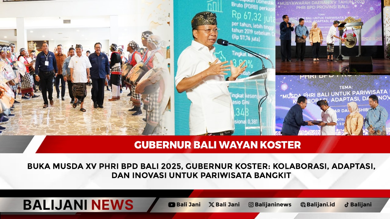 Denpasar, Balijani.id|  Gubernur Bali Wayan Koster secara resmi membuka Musyawarah Daerah (MUSDA) XV Tahun 2025 Perhimpunan Hotel dan Restoran Indonesia (PHRI) BPD Provinsi Bali yang dirangkaikan dengan seminar dan ekshibisi bertema “MUSDA PHRI Bali untuk Pariwisata Bangkit: Kolaborasi, Adaptasi, dan Inovasi”, bertempat di Prime Plaza Hotel Sanur, Rabu (3/12).