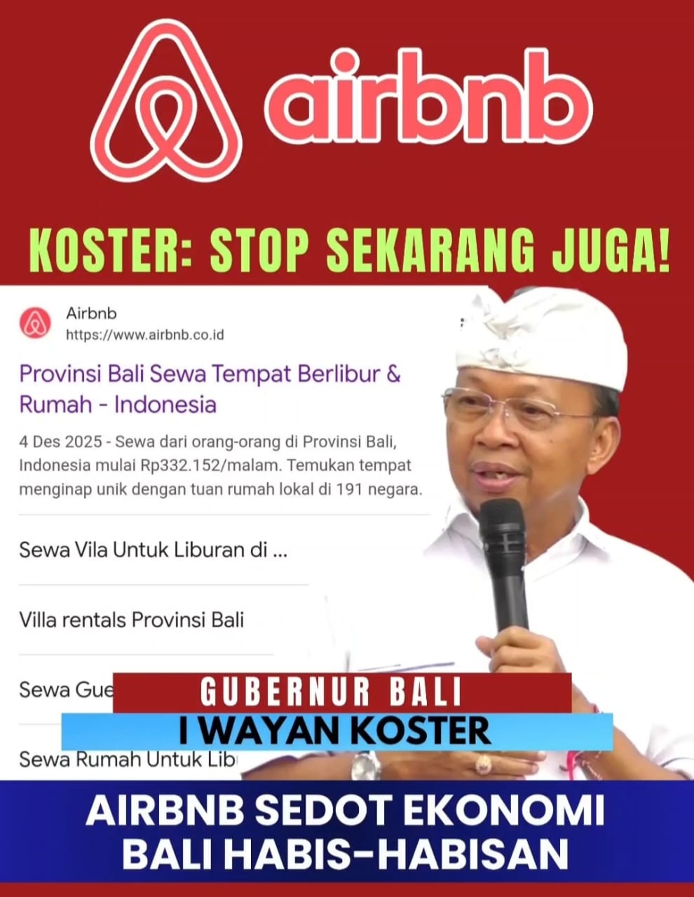 Karena itu garisnya kini sangat jelas dan keras. Airbnb ilegal harus berhenti. Bali tidak boleh terus dijarah dengan dalih pariwisata. Koster menekan tombol STOP bukan untuk menghambat wisata, tapi untuk menyelamatkan Bali sebelum pulau ini benar-benar hilang dari tangan masyarakatnya sendiri.