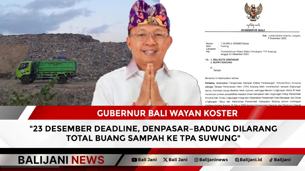 Melalui surat resmi tertanggal 5 Desember 2025, Koster menegaskan bahwa TPA Suwung wajib ditutup paling lambat 23 Desember 2025. Setelah tanggal tersebut, kedua daerah dilarang total membuang sampah ke TPA legendaris yang selama puluhan tahun menjadi pusat penampungan sampah Pulau Dewata.