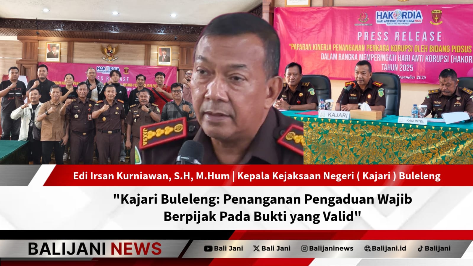 Buleleng, Balijani.id| Kejaksaan Negeri Buleleng menegaskan kembali bahwa seluruh laporan pengaduan dari masyarakat diproses secara profesional, normatif, dan berpegang pada ketentuan hukum acara pidana. Penjelasan ini disampaikan untuk menjawab pertanyaan publik terkait penanganan sejumlah perkara yang dinilai seolah tersaring sebelum ditindaklanjuti dalam Press Release Paparan Kinerja Penanganan Perkara Korupsi Bidang Pidsus Kejari Buleleng dalam Rangka Memperingati Hari Anti Korupsi ( Harkodia ) Tahun 2025, di Aula Kejari Buleleng, Selasa,( 9/12/2035 )