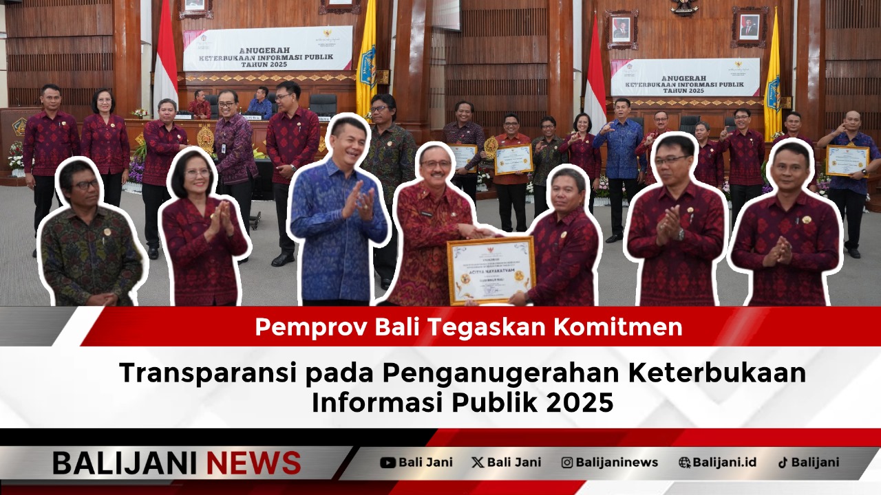 Denpasar, Balijani.id| Pemerintah Provinsi Bali kembali menegaskan komitmennya terhadap transparansi melalui ajang Penganugerahan Keterbukaan Informasi Publik Tahun 2025 yang digelar Komisi Informasi Provinsi Bali di Gedung Wiswa Sabha Utama, Kantor Gubernur Bali, Denpasar, Selasa (9/12). Staf Ahli Gubernur Bali Bidang Hukum, Politik, dan Pemerintahan, Cok. Bagus Pemayun, hadir mewakili Gubernur Bali sekaligus membacakan sambutan resmi.
