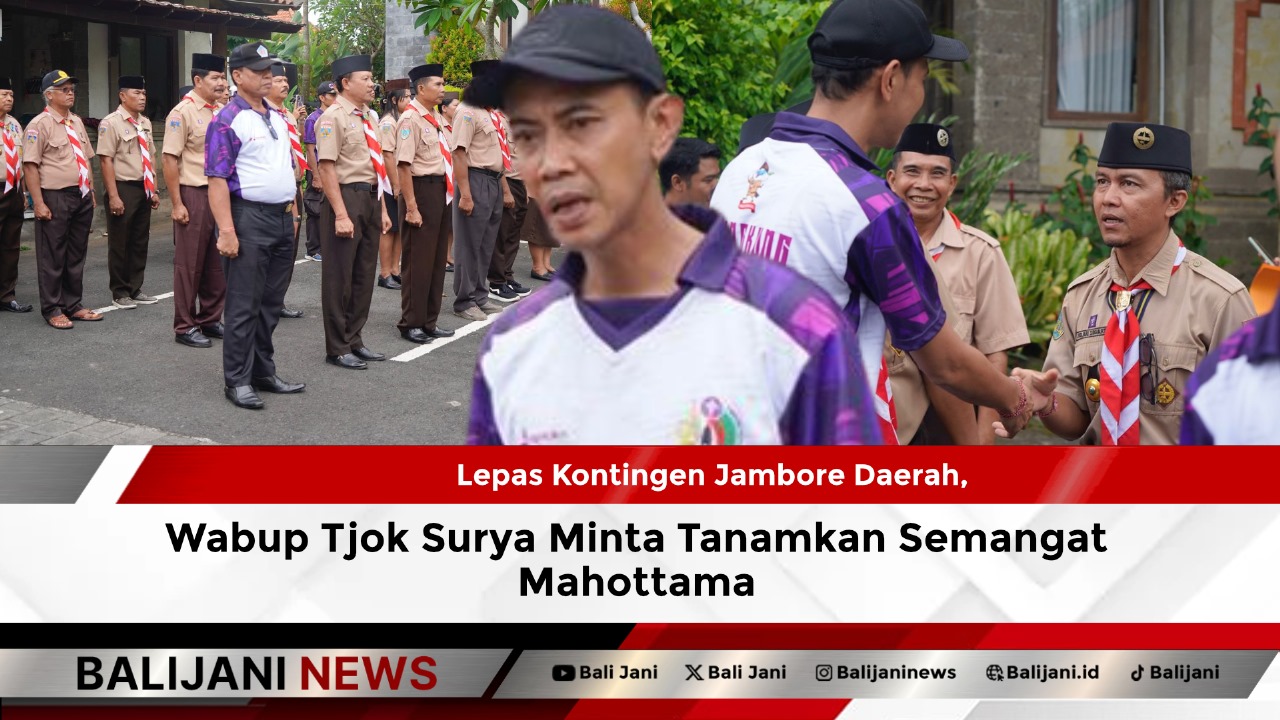 Klungkung, Balijani.id| Wakil Bupati Klungkung, Tjokorda Gde Surya Putra mewakili Bupati Klungkung melepas Kontingen Kwarcab Klungkung untuk mengikuti Jambore Daerah (Jamda) Bali Tahun 2025 dihalaman depan Kantor Bupati Klungkung, Kamis (11/12).