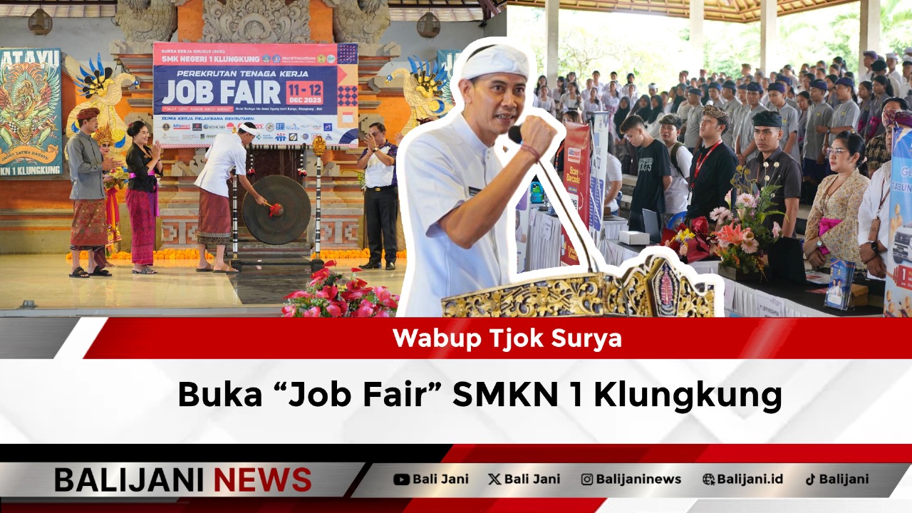 Klungkung, Balijani.id| Wakil Bupati Klungkung, Tjokorda Gde Surya Putra mewakili Bupati Klungkung membuka Perekrutan Tenaga Kerja “Job Fair” Bursa Kerja Khusu (BKK) SMK Negeri 1 Klungkung di Balai Budaya Ida Dewa Agung Istri Kanya, Kamis (11/12).