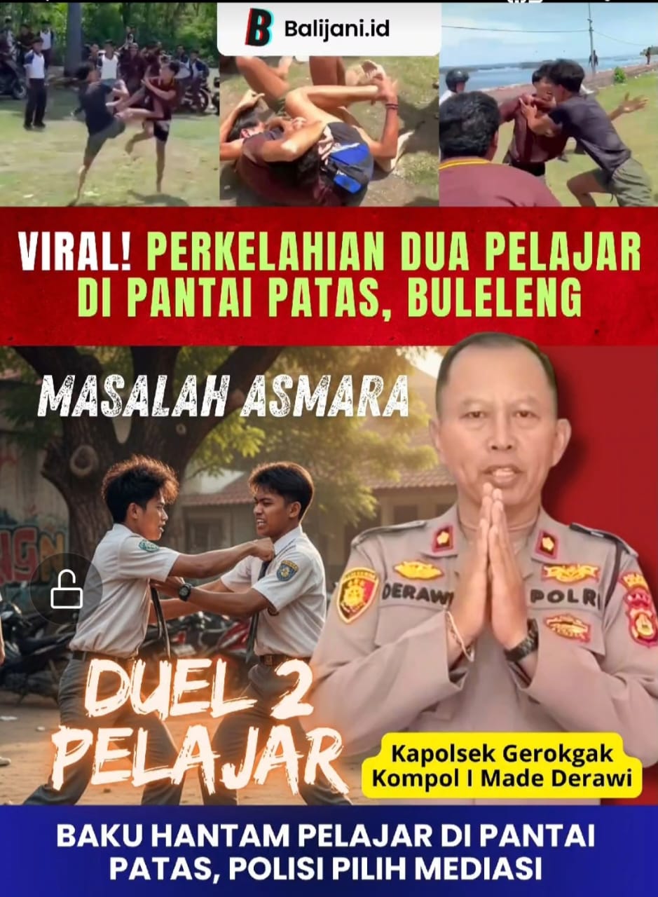 Buleleng, Balijani.id| Perkelahian antar pelajar yang terjadi di kawasan Pantai Patas, Kecamatan Gerokgak, Kabupaten Buleleng, menyita perhatian publik setelah videonya viral di media sosial. Insiden tersebut tidak hanya memunculkan kekhawatiran soal kekerasan di kalangan pelajar, tetapi juga menyorot pentingnya peran cepat aparat dan sekolah dalam mencegah konflik berlanjut.