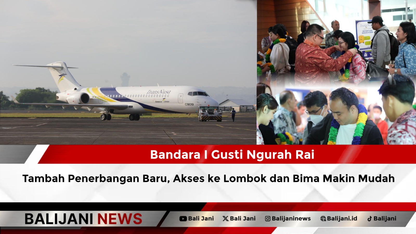 Mangupura, Balijani.id| 16 Desember 2025 — Konektivitas Bali ke wilayah Indonesia Tengah semakin terbuka luas dengan dibukanya dua penerbangan baru TransNusa tujuan Denpasar-Lombok-Denpasar dan Denpasar–Bima-Denpasar. Bandara I Gusti Ngurah Rai mulai melayani kedua rute tersebut pada Senin, 15 Desember 2025.
