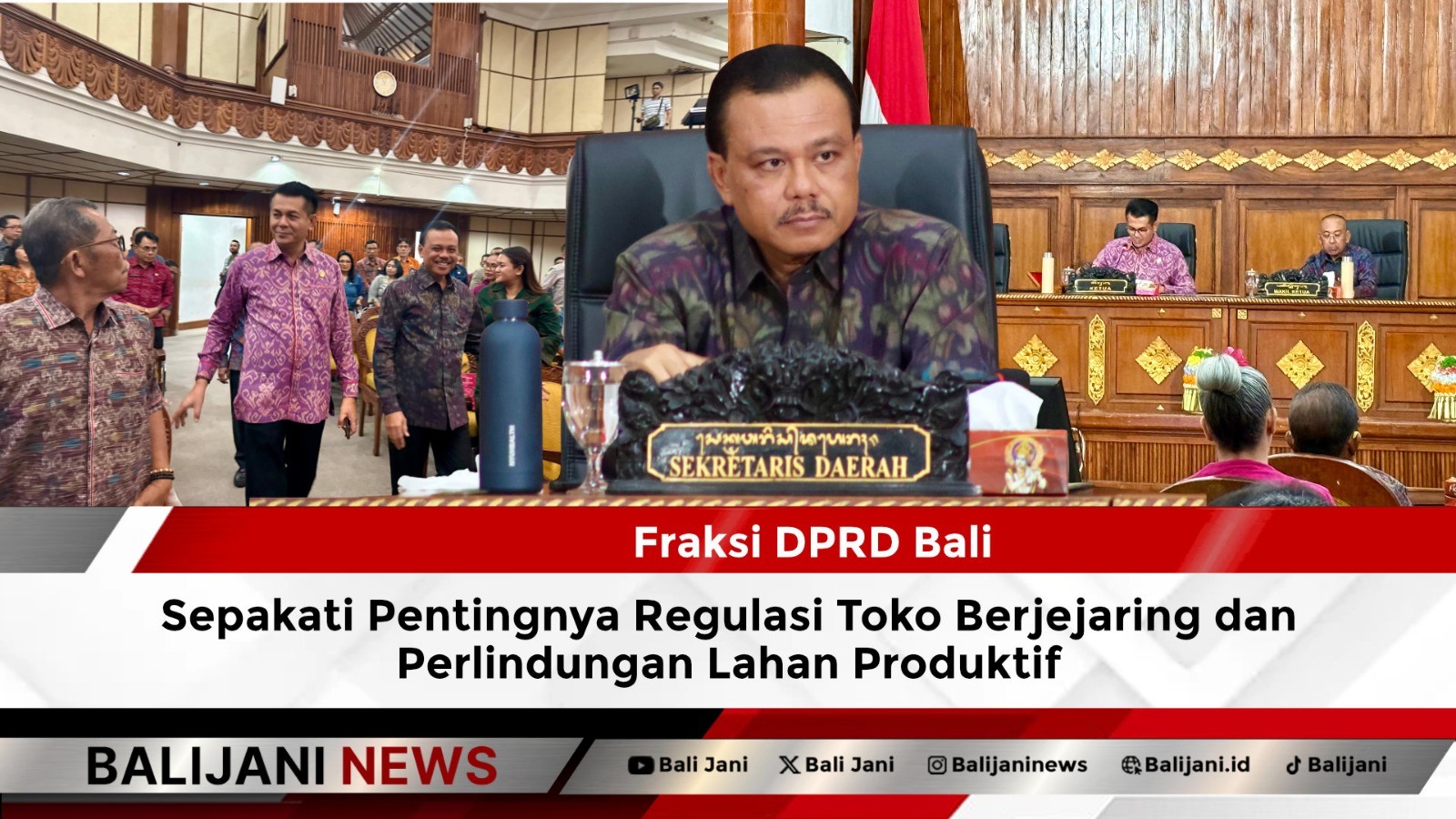 Denpasar, Balijani.id| Fraksi-fraksi DPRD Provinsi Bali menyepakati pentingnya kehadiran regulasi untuk mengendalikan pertumbuhan toko modern berjejaring serta melindungi lahan produktif di Bali. Kesepakatan tersebut mengemuka dalam Rapat Paripurna ke-17 DPRD Provinsi Bali Masa Persidangan I Tahun Sidang 2025–2026 yang digelar di Gedung DPRD Provinsi Bali, Senin (15/12).