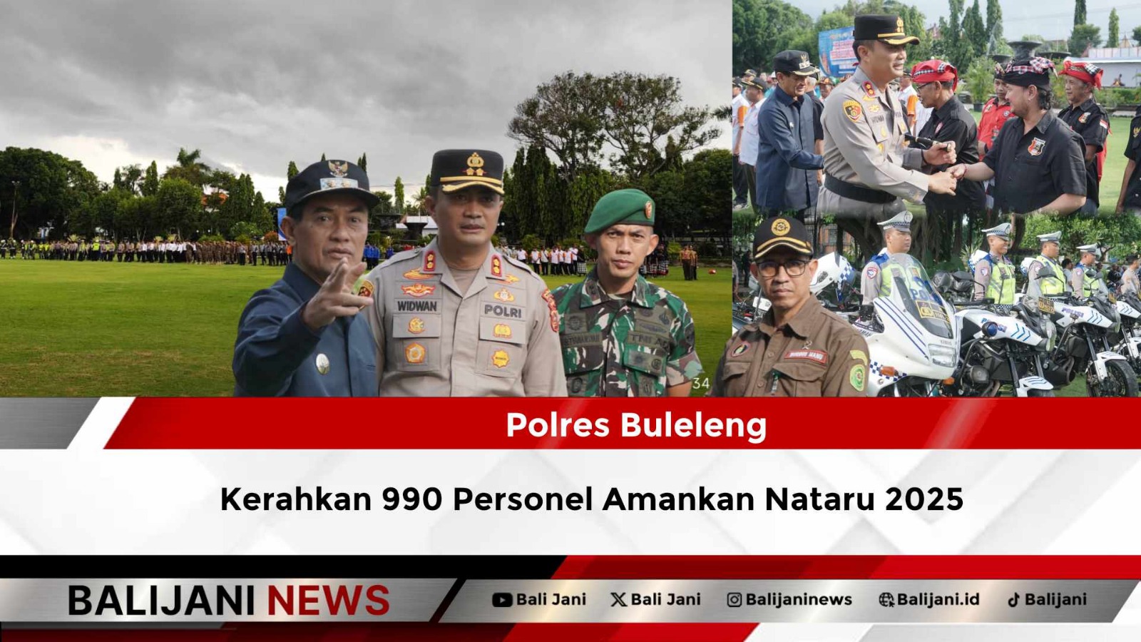 “Polres Buleleng melibatkan sekitar 990 personel kepolisian yang didukung TNI dan instansi terkait untuk mengamankan 58 tempat ibadah, objek wisata, pasar, pelabuhan, serta pusat keramaian selama Natal dan Tahun Baru,” ujarnya.