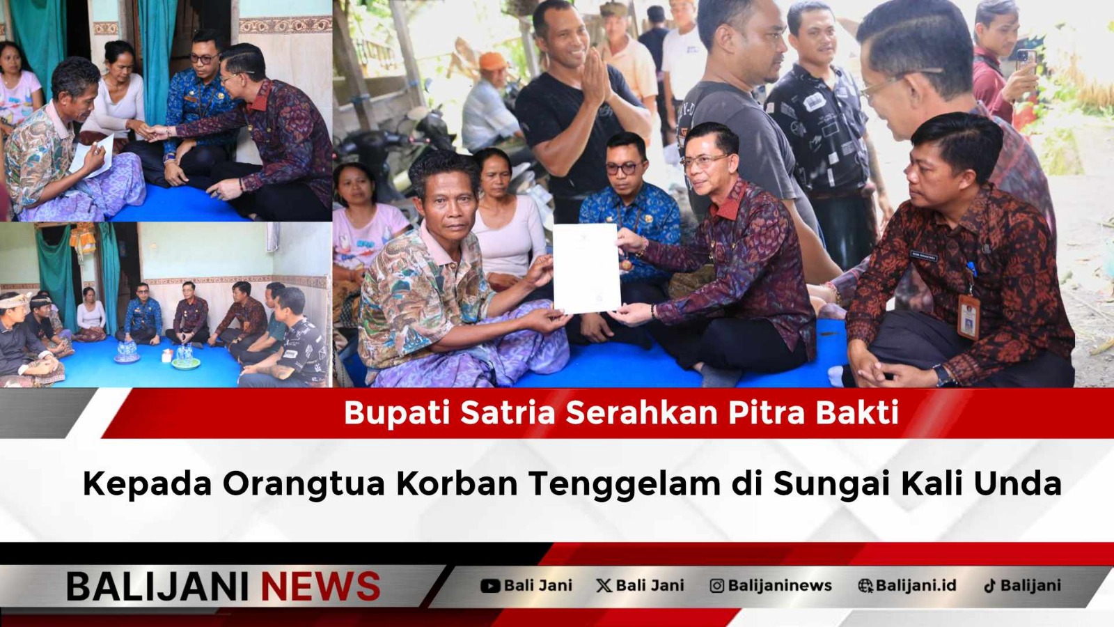 Seusai menyerahkan Pitra Bakti, Bupati Satria menyampaikan duka yang mendalam kepada kedua orang tua Ni Komang Pande Ariani (14), Bupati juga menyemangati kedua orang tuanya.