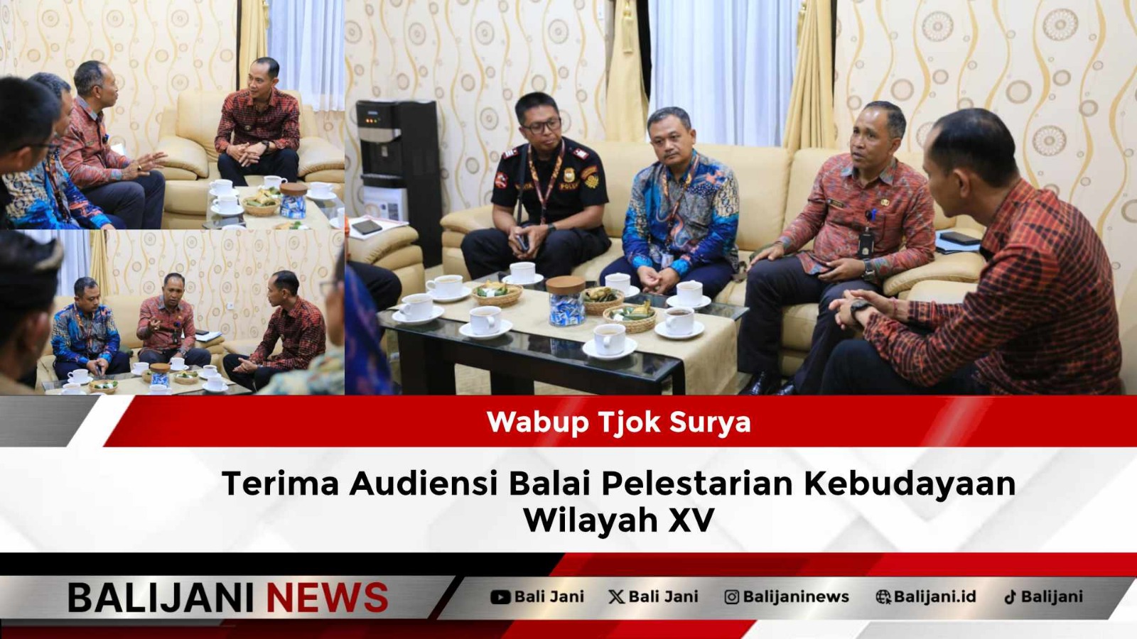 Klungkung, Balijani.id| Wakil Bupati Klungkung Tjokorda Gde Surya Putra menerima audiensi dari Kepala Balai Pelestarian Kebudayaan Wilayah XV yang didampingi oleh Kepala Dinas Kebudayaan Kabupaten Klungkung I Wayan Suteja, bertempat dikantor Wakil Bupati Klungkung, Selasa (6/1/2026).