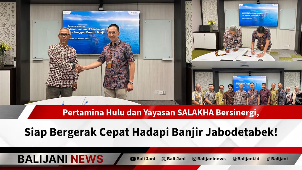 Jakarta, Balijani.id| Untuk mempertegas komitmen terhadap keselamatan manusia dan lingkungan, PT Pertamina Hulu Indonesia (PHI) menandatangani Nota Kesepahaman atau Memorandum of Understanding (MoU) dengan Yayasan Selaras Alam Khatulistiwa (SALAKHA) terkait kerja sama pembentukan Tim Tanggap Darurat Banjir.