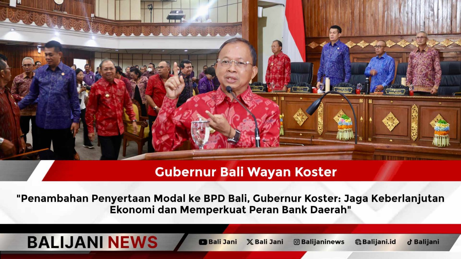 “Kita menyadari bahwa tantangan ekonomi ke depan semakin dinamis, seiring dengan konsolidasi industri perbankan nasional berbasis Kelompok Bank Berdasarkan Modal Inti. Dalam konteks tersebut, penguatan permodalan Bank BPD Bali bukan semata-mata keputusan bisnis, melainkan langkah strategis agar bank daerah Kita tetap kuat, berdaya saing, serta mampu menjaga kepercayaan masyarakat dan dunia usaha di Bali,” kata Koster.