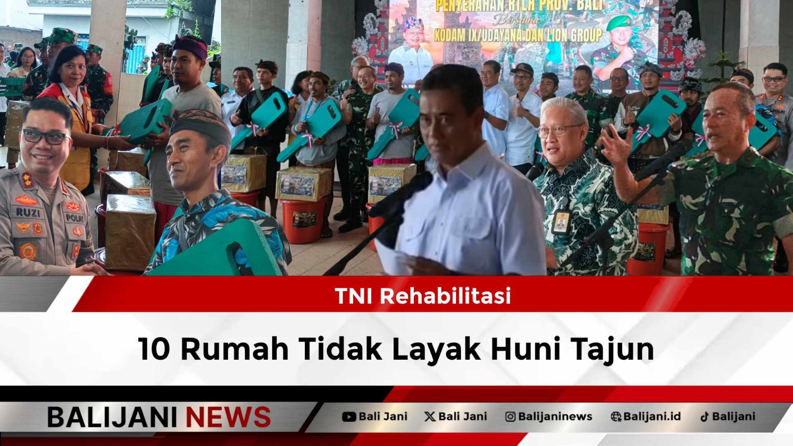 Buleleng, Balijani.id| Harapan memiliki rumah yang layak akhirnya terwujud bagi 10 keluarga di Desa Tajun, Kecamatan Kubutambahan, Kabupaten Buleleng. Rumah yang sebelumnya masuk kategori tidak layak huni kini telah direhabilitasi dan resmi diserahkan kepada penerima manfaat oleh Pangdam IX/Udayana Mayjen TNI Piek Budyakto, Rabu (14/1).