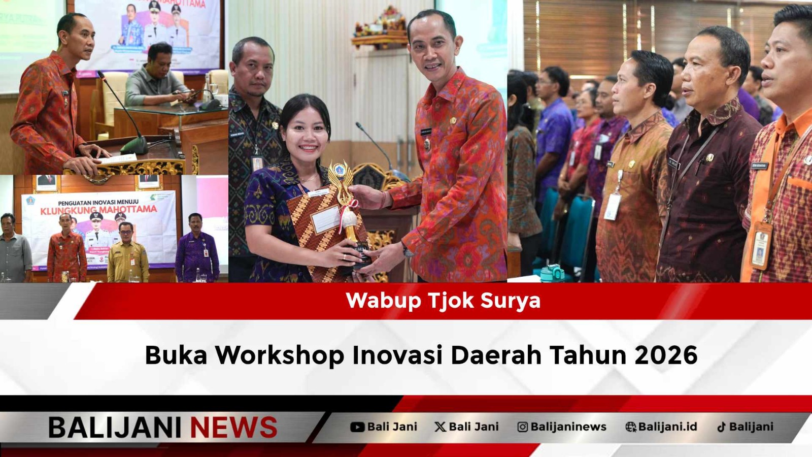 Klungkung, Balijani.id| Wakil Bupati Klungkung, Tjokorda Gde Surya Putra mewakili Bupati Klungkung membuka Workshop Inovasi Daerah Tahun 2026 di ruang rapat Praja Mandala, Kantor Bupati Klungkung, Selasa (20/1).