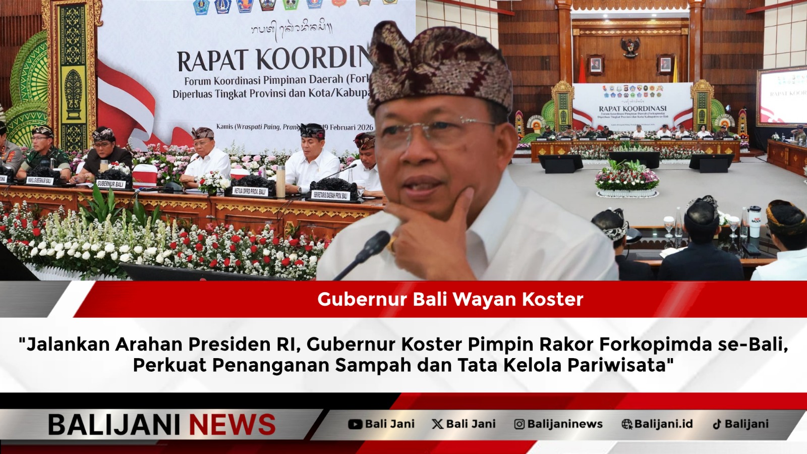 Denpasar, Balijani.id| Menindaklanjuti arahan Presiden Republik Indonesia dalam rapat koordinasi nasional beberapa waktu lalu, Gubernur Bali Wayan Koster menggelar Rapat Koordinasi Forum Koordinasi Pimpinan Daerah (Forkopimda) Plus tingkat Provinsi serta Kota/Kabupaten se-Bali, bertempat di Gedung Wiswasabha Kantor Gubernur Bali, Renon, Denpasar pada Kamis (19/2/2026).