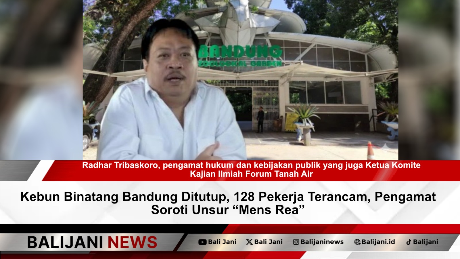 Bandung, Balijani.id| Polemik penutupan Kebun Binatang Bandung terus bergulir dan memantik perdebatan publik. Sengketa lahan yang semula dipahami sebagai persoalan perdata kini bergeser ke ranah pidana korupsi. Sejumlah kalangan mempertanyakan dasar hukum serta proporsionalitas langkah yang ditempuh Pemerintah Kota Bandung.