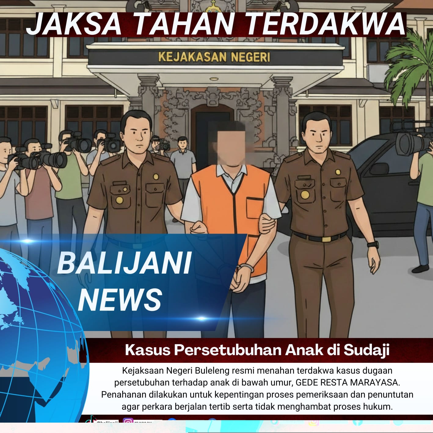 Buleleng, Balijani.id| Kejaksaan Negeri Buleleng resmi menahan terdakwa kasus dugaan persetubuhan terhadap anak di bawah umur, GRM. Penahanan dilakukan untuk kepentingan proses pemeriksaan dan penuntutan agar perkara berjalan tertib serta tidak menghambat proses hukum, pada hari Rabu, ( 25/2/2026 ) pukul 11, 23 WITA.