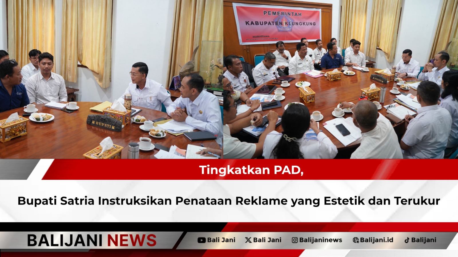 Klungkung, Balijani.id| Bupati Klungkung, I Made Satria didampingi Wakil Bupati Klungkung, Tjokorda Gde Surya Putra memimpin Rapat Koordinasi Terbatas (Rakortas) terkait Pemaparan Hasil Pemetaan dan Penyelenggaraan Reklame yang berlangsung di Ruang Rapat Kantor Bupati Klungkung, Rabu (25/2).