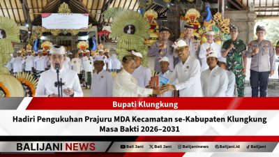 Klungkung, Balijani.id| Bupati Klungkung I Made Satria menghadiri upacara pengukuhan Prajuru Majelis Desa Adat (MDA)…